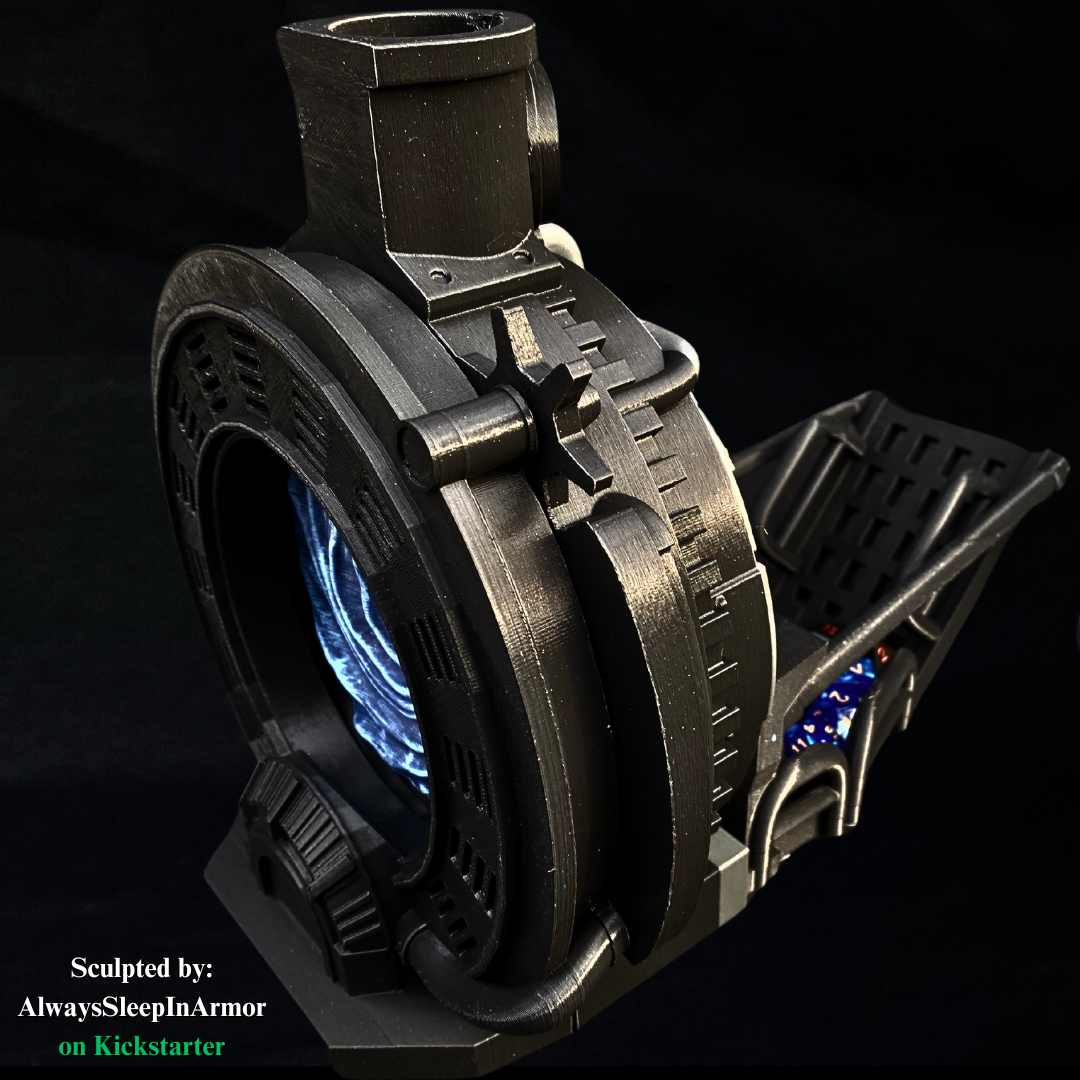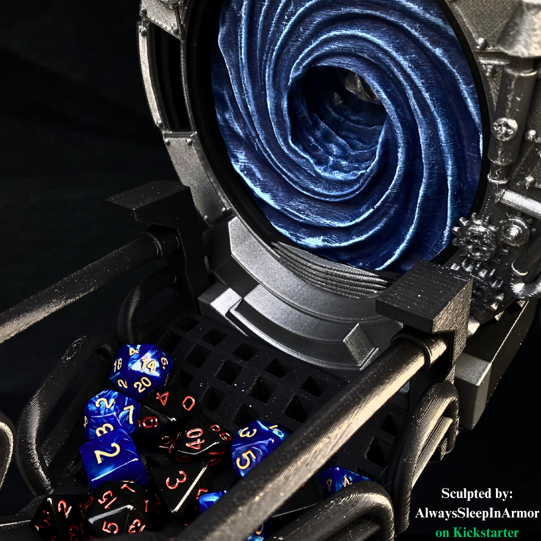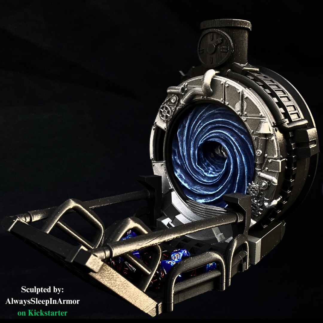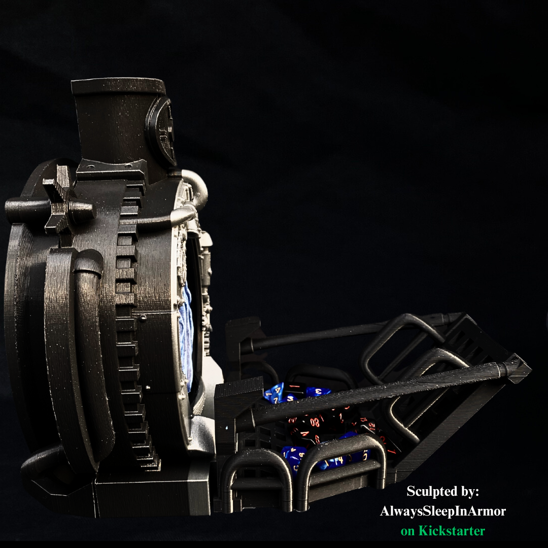 Part portal, part questionable Victorian engineering, this unpainted PLA tower looks like it rolled straight out of a mad inventor’s workshop. Brass, gears, and unsafe steam pressure work together to hurl your dice through timelines where probability runs on clockwork and sanity is optional.